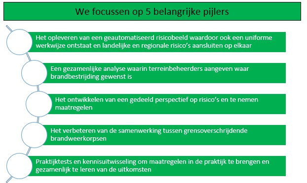 Natuurbranden houden geen rekening met landsgrenzen. In de grensgebieden tussen Vlaanderen en Noord-Brabant liggen uitgestrekte natuurgebieden die kwetsbaar zijn voor brand. Door klimaatverandering en bevolkingsgroei neemt het risico op langdurige droogte en intensere brandseizoenen snel toe. Dit heeft gevolgen voor mens, natuur, infrastructuur en vitale processen zoals drinkwater, energie en telecommunicatie. Een grote natuurbrand kan leiden tot enorme economische schade en maatschappelijke ontwrichting.